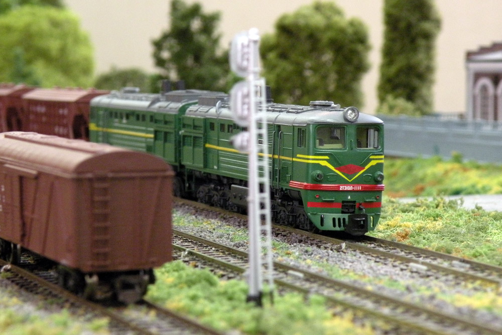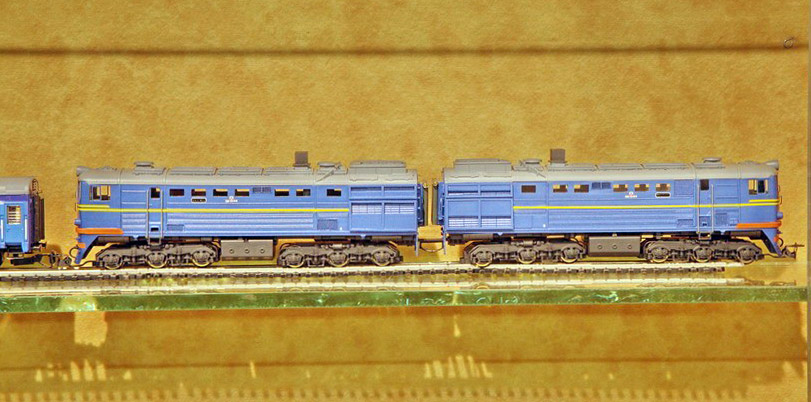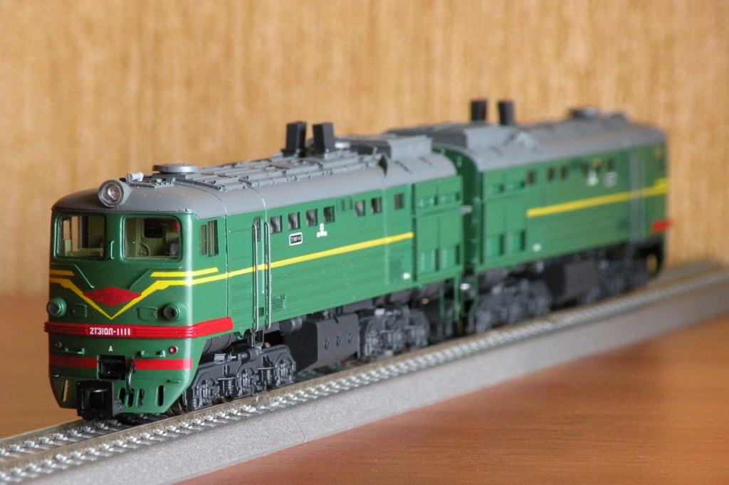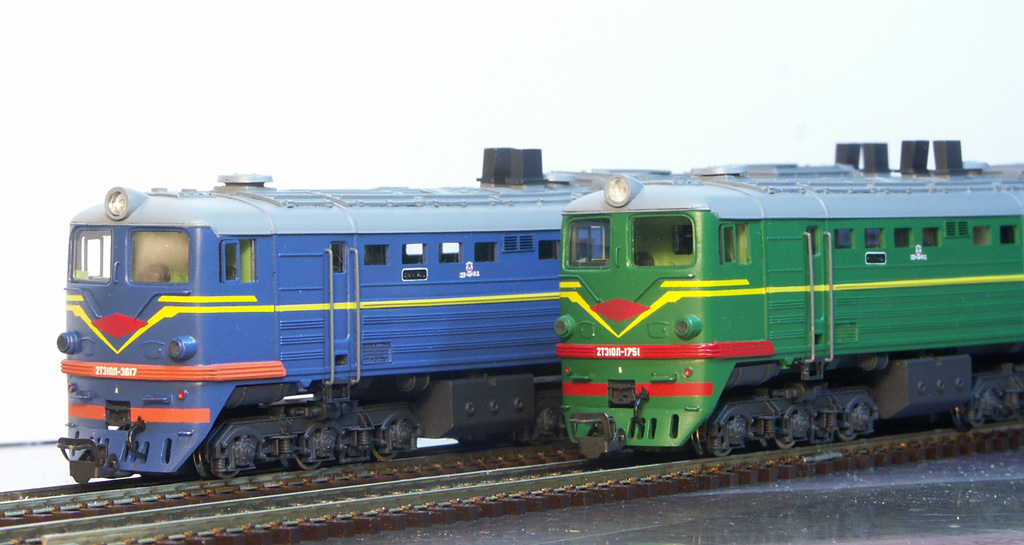 Разновидности: разные номера и ж.д. приписки (по инд. заказу); зелёный и голубой. Эпоха: IV-V Принадлежность: СЖД Фирма-производитель: ТТ-ТТ Год начала производства: 2008 Год окончания производства: производится по настоящее время Описание моделиМалосерийное производство модели тепловоза 2ТЭ10Л ведётся с конца 2008 г. творческим объединением "ТТ-ТТ" (г.Саров). Образец модели впервые экспонировался для широкой публики на выставке "Железнодорожный моделизм-2009" в Санкт-Петербурге. ММодель выполнена по традиционной для производителя технологии и отличается хорошей деталировкой. Обмоторена одна секция (предусмотрено использование ходовки от тепловоза М62 производства фирмы Tillig). Использованы некоторые детали (боковины тележек, сцепки) производства фирмы "Пересвет". Известны следующие варианты модели: - 2ТЭ10Л-077 Мск.ж.д., зелёный, СЖД; - 2ТЭ10Л-1077 Гор.ж.д., голубой, СЖД; - 2ТЭ10Л-1111 Гор.ж.д., зелёный, СЖД; - 2ТЭ10Л-1111 Сев.ж.д., зелёный, СЖД; - 2ТЭ10Л-1751 Сев.ж.д., зелёный, СЖД; - 2ТЭ10Л-3617 Кбш.ж.д., зелёный, СЖД; - 2ТЭ10Л-3617 Сев.ж.д., зелёный, СЖД; - 2ТЭ10Л-3617 Мск.ж.д., голубой, РЖД. Описание прототипаГрузовой тепловоз серии 2ТЭ10Л был создан в 1961 г. на Луганском тепловозостроительном заводе как дальнейшее развитие тепловоза 2ТЭ10. Вместо кузовов несущей конструкции на нём были применены кузова с несущей рамой по принципу ТЭ3, с новой, характерной только для 21ТЭ10Л, формой кабины. Мощность дизелей составляла 2 х 3000 л.с.; проектная мощность локомотива составляла 1910 кВт, конструкционная скорость – 100 км/ч. Тепловозы 2ТЭ10Л изготавливались до 1977 г. включительно; за это время построено около трёх с половиной тысяч двухсекционных тепловозов этой серии. Их массовое списание началось в 1990-е гг., и сегодня 2ТЭ10Л остались на Российских железных дорогах в незначительном количестве. Тепловоз 2ТЭ10Л-2110 (настоящий номер 2100) экспонируется в музее Новосибирска; еще один 2ТЭ10Л-254 экспонируется в Ташкентском музее.