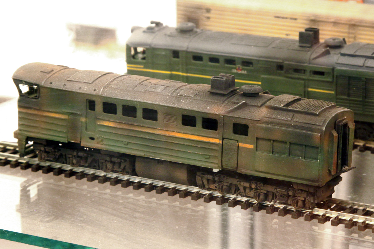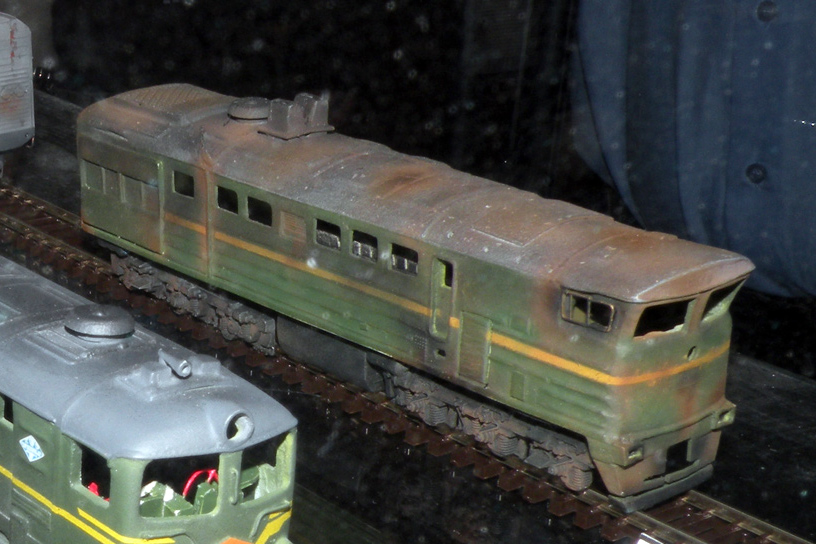 Разновидности: модель выполнена в единственном экземпляре (одна секция) Эпоха: 4-5 Фирма-производитель: Зименков А. Год начала производства: 2013 Описание моделиМодель "списанного" тепловоза 2ТЭ10У (одна секция) приписки Сев. ж.д. самостоятельно выполнена петербуржским моделистом Андреем Зименковым. Материал корпуса - полистирол. Использованы тележки от модели немецкого тепловоза серии 132 (ROCO). ВМодель окрашена с использованием технологий "состаривания". Модель впервые экспонировалась на выставке "Железнодорожная модель. Искусство железнодорожного моделизма" в ЦМЖТ (СПб), в марте 2014 г. Другие модели тепловоза 2ТЭ10У: - от Д.Камушкина и "Б.В.-Ж.Д." (малая серия); - от В.Прийменко.