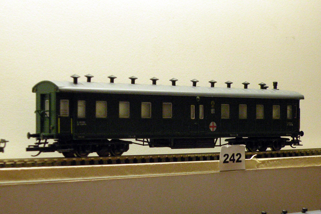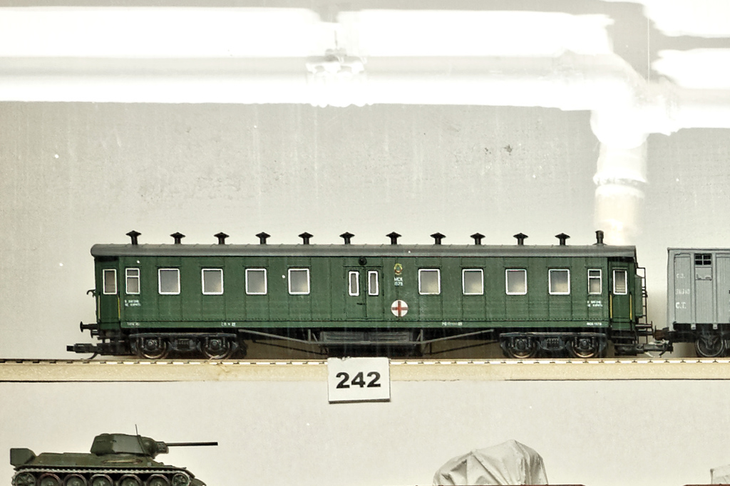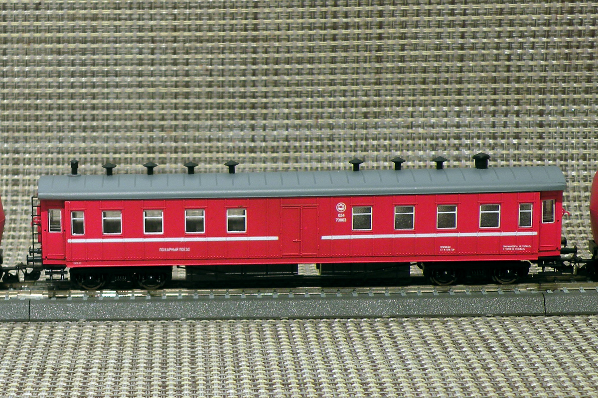 Эпоха: III-IV Принадлежность: СЖД Фирма-производитель: Иванов С. Год начала производства: 2016 Описание моделиВагон санитарного поезда на базе 20.2-метрового "егоровского" пассажирского вагона - конверсия, выполненная петербургским моделистом Сергеем Ивановым на базе малосерийной модели штабного вагона пожарного поезда от фирмы "Пересвет". Конструктивная часть конверсии включает в себя: устройство окон в центральных дверях и лампочек над ними, установку других окон, иное количество крышевых дефлекторов. Модель впервые экспонировалась на выставке "Железнодорожная модель - 2016" в ЦМЖТ, Санкт-Петербург. Другие модели санитарных вагонов длиной 20.2 м.: - от фирмы "Пересвет" (малая серия); - от В.Дёмина (вагон "владикавказского" типа); - от Д.Екимова.