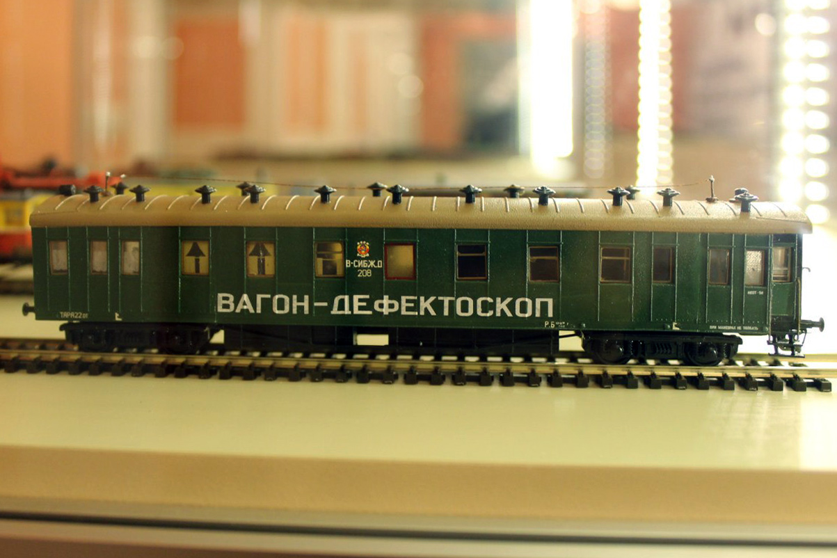 Кадр 1. Модель вагона-дефектоскопа на выставке в ЦМЖТ (Санкт-Петербург), март 2013 г.