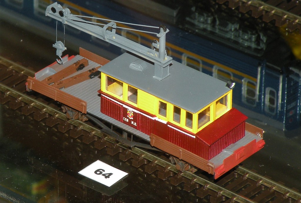 Эпоха: III-IV Принадлежность: СЖД Фирма-производитель: Ходаков А. Описание моделиМодель крана-дрезины ЭЩ1 (приписка: Сев. ж.д.) выполнена петербургским моделистом Антоном Ходаковым. Модель находится в коллекции К.Виноградова и впервые экспонировалась на выставке "Железнодорожная модель" в ЦМЖТ, Санкт-Петербург, в марте 2013 г. Другие модели дрезины Эщ: - от М.Кечетова; - от С.Набатова, А.Ходакова и А.Щеглова (малая серия).