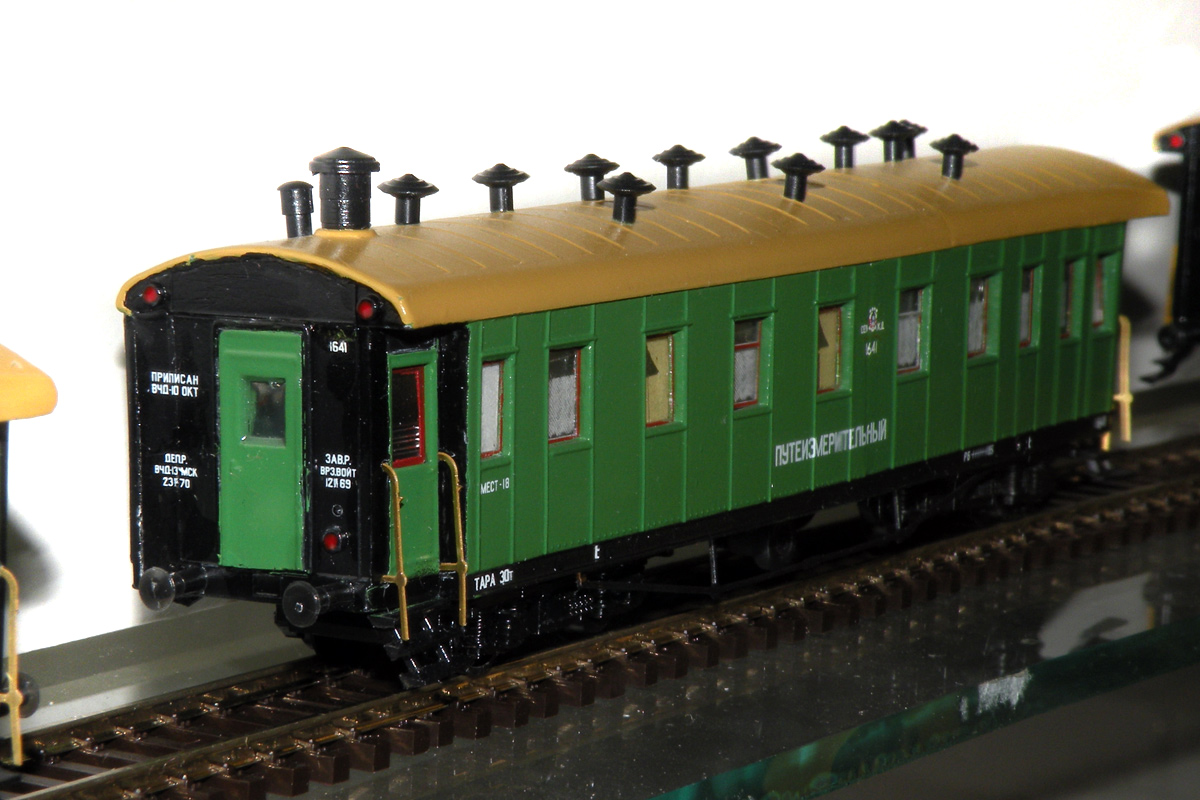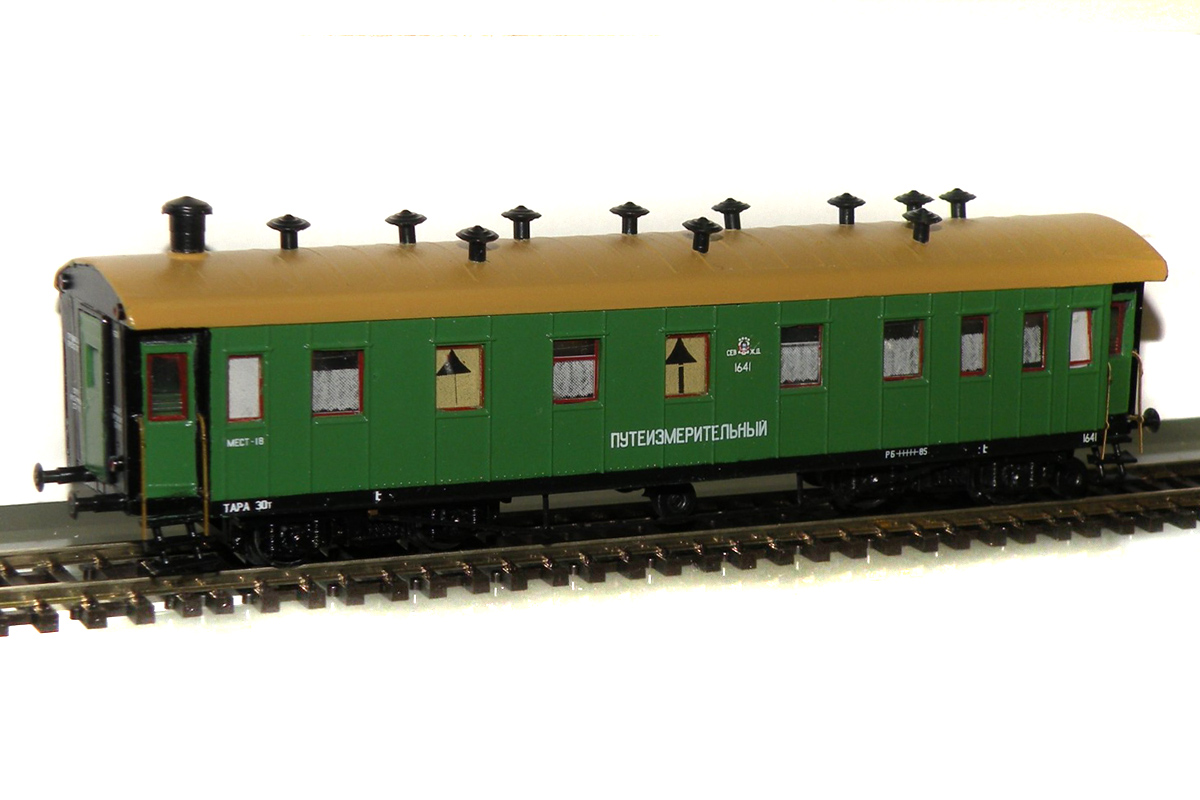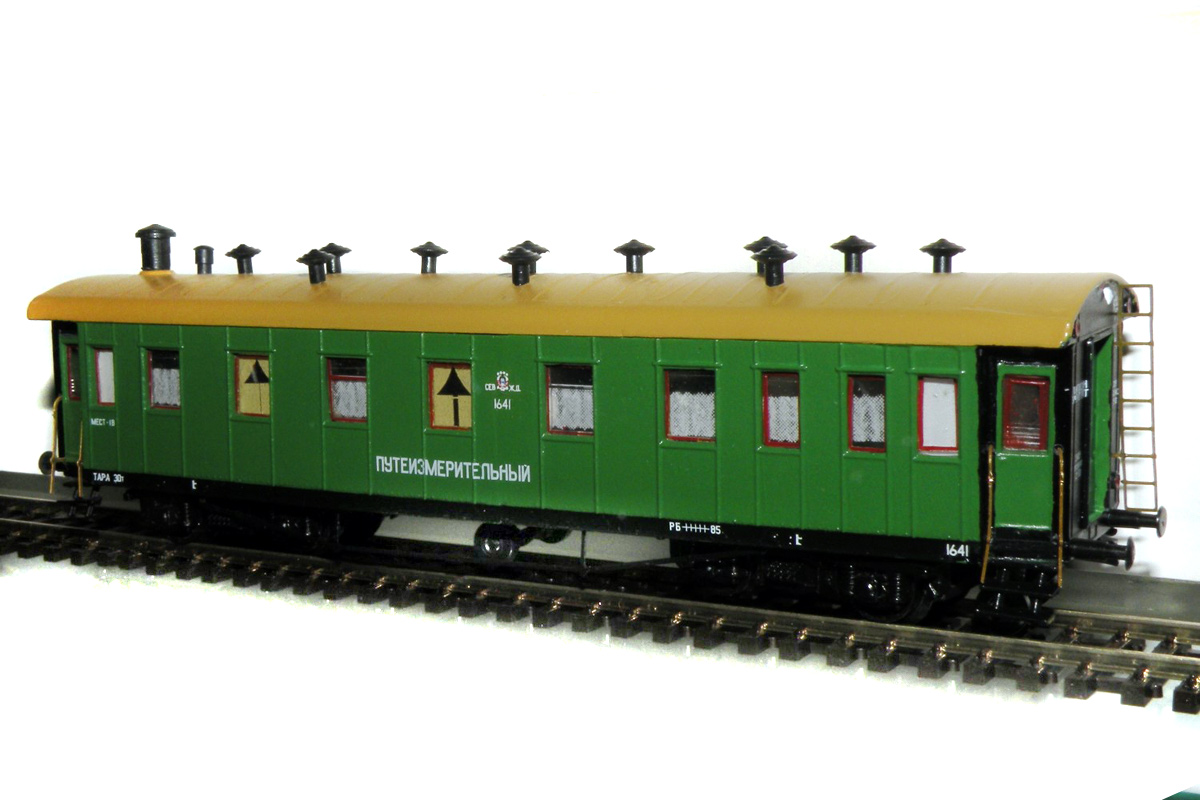 Эпоха: III Принадлежность: СЖД Фирма-производитель: Кечетов М. Год начала производства: 2014 Описание моделиМодель выполнена московским моделистом Михаилом Кечетовым и впервые экспонировалась на выставке в "Железнодорожная модель" в марте 2014 г. в ЦМЖТ, Санкт-Петербург. Для изготовления модели использованы детали "егоровских" вагонов производства фирмы "Пересвет", а также тележки типа АРВ. Описание прототипаВагон-прототип - дефектоскопная лаборатория службы пути Северной ж.д. - выполнен на базе четырехосного пассажирского вагона длиной 18 м.
