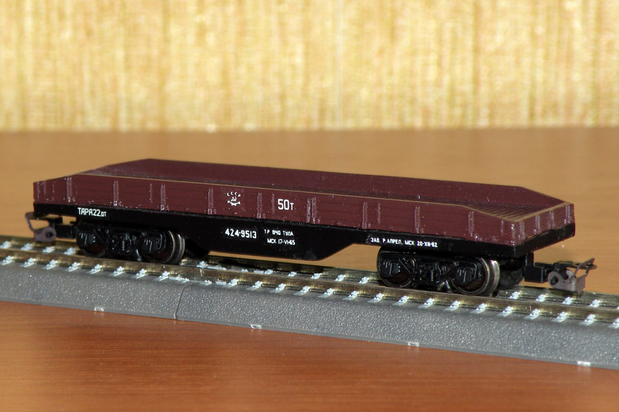 Кадр 1. Модель нетормозной 4-осной платформы СЖД с деревянными бортами, выполненная А.Шустовым.