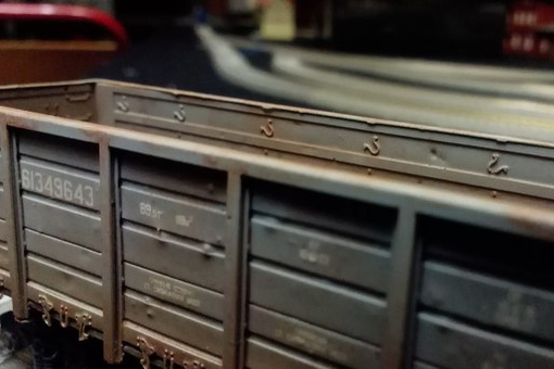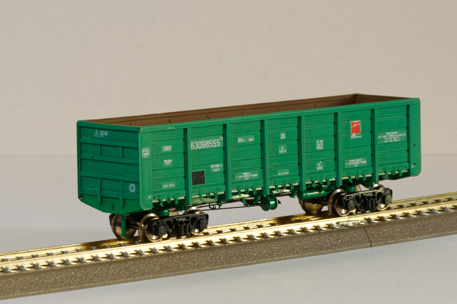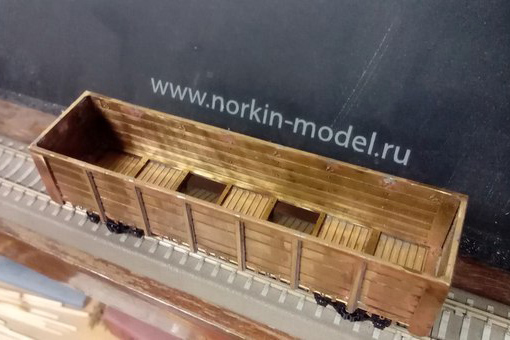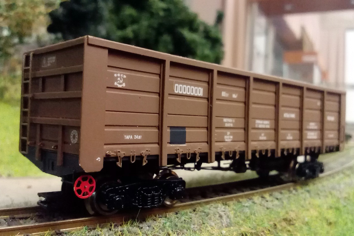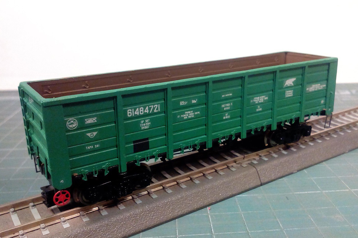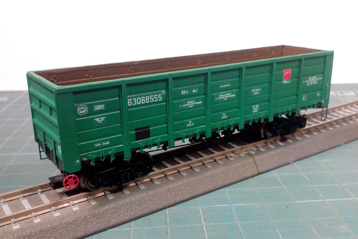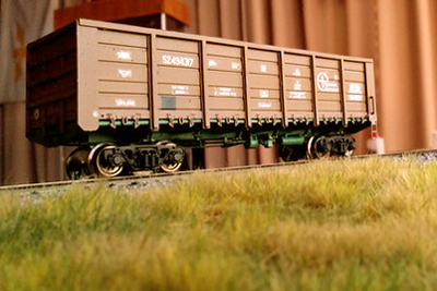 Разновидности: разные бортовые номера, цвет, принадлежность Эпоха: IV-V Принадлежность: РЖД, "Первая грузовая компания" и др. Фирма-производитель: Норкин-модель Год начала производства: 2015 Год окончания производства: производится по настоящее время Заказать модель: https://vk.com/norkin_model Описание моделиПолностью готовая модель современного полувагона мод. 12-132-03 производится Мануфактурой "Норкин-Модель" с сентября 2015 г. Материал корпуса - травлёная латунь; использованы тележки ЦНИИ-Х3О от фирмы "Пересвет". Интересная особенность модели, выделяющая её из ряда аналогичных модельных полувагонов - аутентично проработанные нижняя часть и внутренняя поверхность кузова (включая днище), полностью соответствующие прототипу. Люки на модели могут быть открыты или закрыты (на готовой модели каждый из люков фиксируется в определенном положении). Такая "изюминка" раньше не встречалась на моделях полувагонов в типоразмере ТТ. Модель предлагается в различных цветономерных вариантах: - девять разных номеров; - четыре различные транспортные компании; - три цветовых схемы (коричневая, зелёная, вишнёвая окраска кузова). Ещё один вариант - опытный вагон конца IV эпохи с эмблемой СЖД. На части моделей впервые применен "натуральный способ состаривания" - повреждение кузова от реальных камней балластной присыпки в типоразмере Н0. Это придаёт "состаренным" моделям полувагонов особенно копийный вид. Производитель тррадиционно предлагает эту модель и в виде "кита" из травлёной латуни для самостоятельной сборки. Описание прототипа4-осный полувагон с откидными люками (мод. 12-132-03) серийно производится Уралвагонзаводом с 2004 г. Грузоподъёмность - 69,5 т. Торцевые стенки глухие. В полу 14 откидных люков (по 7 с каждой стороны).