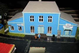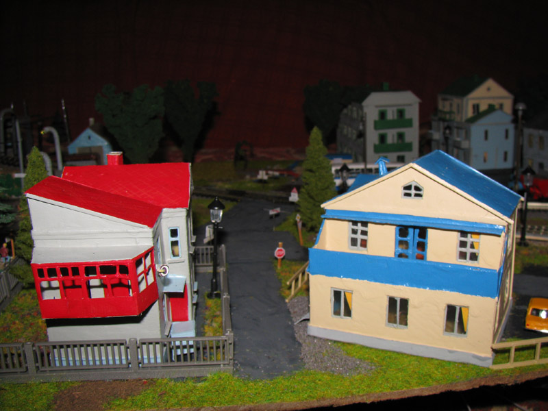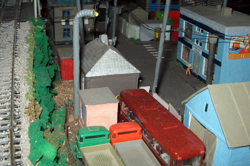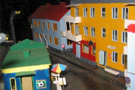 ИСТОРИЯ Если имеется железная дорога, хоть и миниатюрная, значит должно быть депо! Долгое время в качестве него использовались различные тупики на большом макете, иногда обрастая заборами, но конфигурация макета и его застройка не позволяла соорудить регулярное депо с ремонтным цехом. Выход был найден в постройке отдельной диорамы. Диорама была построена в 1997 году, аккурат к юбилею появления у меня модельной железной дороги в типоразмере ТТ, а соответственно и "Дня рождения" моей миниатюрной дороги! Основная концепция диорамы: однопутная железнодорожная станция, а рядом территория локомотивного депо. В 1997 году у меня был как раз финансовый кризис, да и вообще в то время было трудно что-нибудь купить для железной дороги, - в результате пошли в ход старые рельсы от ВТТВ, ранее уже успевшие послужить на основном макете и не блиставшие особым качеством. Зато все здания, сооружения были изготовлены самостоятельно из картона, деревья - из проволоки и крашенного поролона, имитация травяного покрова - из крашеного поролона и присыпки в виде крашенных опилок, насыпь сымитирована песком и мелким щебнем. Вокруг станции и депо находилась жилая зона, включающая как жилые дома, так и магазины, киоски. Был изготовлен сквер с фонтаном. РЕКОНСТРУКЦИЯ К лету 2007 года диорама представляла нерадостное зрелище. Находившись последние лет 6-7 на шкафу, она обросла слоем пыли, само депо скорее напоминало свалку. Было принято решение - диораму модернизировать и расширить. Для этого были заново изготовлены действующие фонари, а также освещение зданий; демонтированы все старые пути и присыпка, подремонтированы старые здания. Полностью обновлено и расширено путевое хозяйство с использованием как новых рельс, так и б/у, но в хорошем состоянии, заново сымитирована специальной присыпкой трава, деревья теперь от Noch. Дополнительно было изготовлено два здания: Клуб железнодорожников и Управление ж/д и поселка. Кроме того, использовано несколько б/у зданий от VERO, подаренные коллегой. Территория депо перенесена на окраину, появился тупик для разгрузочно-погрузочных работ. Площадь диорамы увеличена практически в 2 раза, благодаря чему в Д-Штадте появился новый район. Подробное описание диорамы "Городок". ИСТОРИЯ В 1996 году у меня была мания жилищного строительства на первом и единственном тогда макете, плюс сооружались здания необходимой инфраструктуры. Оказалось на макете не хватило места для больницы. И с этой целью была сооружена диорама Городок, где была больница, несколько жилых зданий, вокзал, кафе, магазин. Диорама была изготовлена летом 1997 года. Небольшая по размеру, она выглядела не вполне реалистично, можно было представить себе окружающее пространство с небольшим скоплением зданий. Это несоответствие практически исчезло после расширения диорамы в 2007 году, когда диорама была расширена в более чем два раза. После реконструкции появился тупик на станции. ОБРАЗ Городок пронзает автомагистраль, по окраине идет железнодорожная однопутка, по одну сторону которого располагается частный дом и ферма. В основной части города расположены вокзал, бензоколонка, больница, административное здание, ресторан, жилой сектор. Все здания самодельные из картона, к диораме «приписаны» несколько автотранспортных средств, включая самодельный автобус ПАЗ-3205, фирменные ав