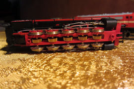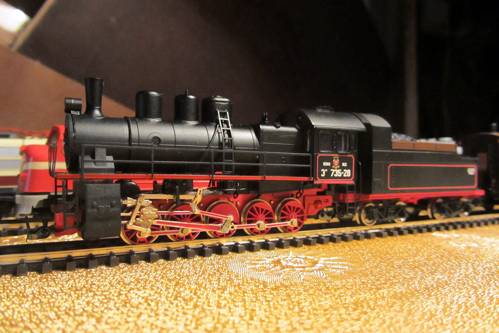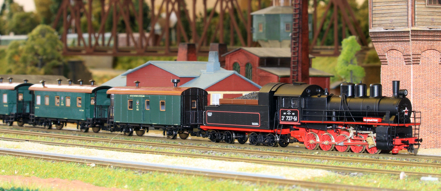 Разновидности: Эм735-28 Южн. ж.д.; Эм737-51 Окт. ж.д. Эпоха: III Принадлежность: СЖД Фирма-производитель: "Пересвет" в кооперации с фирмой "Jago" (Германия) Год начала производства: 2015 Год окончания производства: 2015 (малая серия) Артикул: 1110 Описание моделиМодель паровоза Эм - первая в истории российского ТТ серийная модель паровоза отечественной постройки - была завершена и впервые представлена покупателям на традиционной весенней выставке "Железнодорожная модель-2015" в ЦМЖТ, Санкт-Петербург. Модель выполнена в двух вариантах, отличающихся номерами, дорогой приписки и отдельными деталями тендера. Оба варианта имеют один артикул 1110. Ходовая часть модели - металлическая, выполнена по специальному заказу фирмой "Jago" (Германия). Корпус модели (паровоза и тендера) выполнен из пластика, с использованием отдельных деталей из травлёной латуни. Паровоз и тендер соединены обычной разъёмной сцепкой; электрическое подключение в тендере отсутствует. На паровозе предусмотрено освещение, встроенное в главный прожектор. Модель снабжена комплектом накладных деталей (фонари буферного бруса, турбогенератор, паровоздушный насос, параваны). Корпус смонтирован на ходовку с помощью двухстороннего скотча, таким образом, разборка модели не предусмотрена, хотя и возможна при наличии аккуратности и некоторой сноровки. (Для этого нужно воткнуть и повернуть шлицевую отвёртку между верхней полкой паровой машины и дном дымовой коробки и затем дождаться, когда двусторонний скотч отлипнет). Интересные факты Модель имеет довольно долгую предысторию. В середине 90-х гг. в Германии возникла новая ж.д. модельная фирма "JaTT", созданная Юргеном Ягожинским - большим энтузиастом промышленного моделизма в типоразмере ТТ. В производственной программе фирмы "JaTT" одна за другой появлялись новые модели локомотивов, а её основатель и директор проявил себя человеком, открытым к сотрудничеству и готовым к новым, подчас неожиданным проектам. Встреча Юргена Ягожинского и директора петербургской фирмы "Пересвет" Алексея Земскова завершилась договорённостью о создании совместной модели - советского паровоза, которая должна была стать первой серийной моделью отечественного паровоза в типоразмере ТТ. В центре внимания поначалу оказался самый эффектный из наших паровозов, неизменно вызывающий восхищение не только российских, но и зарубежных любителей - П36. Было решено осуществить кооперацию следующим образом: изготовление модели паровоза берёт на себя "JaTT", изготовление 6-осного тендера - "Пересвет". Этот замысел нашёл отражение в проекте "Русское ТТ", разработанном в 2000 г. ведущим сотрудником "Пересвета" Виктором Дёминым. К сожалению, судьба фирмы "JaTT" в начале 2000-х гг. сложилась непросто. Сама фирма в итоге была закрыта, а её производственную программу поглотил Тиллиг, который отнюдь не горел желанием наладить выпуск П36 в кооперации с "Пересветом". О проекте "Русский паровоз" пришлось на время забыть, пока неунывающий Ю.Ягожинский не создал новую ТТ-модельную фирму - "Jago". Вскоре в модельной линии этой новой фирмы появился паровоз немецкой серии 57 с колёсной формулой 0-5-0, что позволило "Пересвету" вернутся к проекту "Русский паровоз", но уже на основе иного прототипа. Путём небольших изменений (формы цилиндров, числа спиц и т.д.) ходовка модели 57-го паровоза могла быть приведена в полное соот