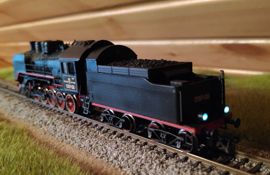 Разновидности: нет Эпоха: 3-4 Принадлежность: СЖД Фирма-производитель: Братский С. Год начала производства: 2022 Описание моделиМодель паровоза СО17-135 выполнена московским моделистом С.В. Братским в 2022 году. В модели применена ходовая часть в сборе от модели немецкого паровоза серии 58 фирмы «Арнольд». По сравнению с паровозами серий 50/52 фирмы «Тиллиг», шасси которых обычно используется для изготовления СО, эта ходовая часть более точно совпадает по своей геометрии с размерами отечественного локомотива. В качестве тендера использован с небольшими доработками тендер паровоза Эм производства «Пересвета». Именно такими тендерами были укомплектованы паровозы СО первых выпусков. Котёл, будку и другие детали модели Сергей Владимирович сделал из листового пластика, проволоки и других подручных материалов. Освещение выполнено на светодиодах и переключается в сторону движения. Модель паровоза СО17-135 изготовлена на заказ и находится в частной коллекции. Другие модели паровоза СО: - от В.Дёмина (СОк); - от С.Братского (СО17-1680). - от С.Братского (СО17-2956). Описание прототипаПаровозы серии СО ("Серго Орждоникидзе") строились с 1934. Они имели практически те же габариты, что и паровозы сериия Э, но были мощнее и хорошо зарекомендовали себя в эксплуатации, в силу чего получили на советских ж.д. относительно широкое распространение. Цифра 17 после обозначения серии (СО17) свидетельствовала о нагрузке на ось 17 т. Всего в период до 1944 г. было выпущено 384 паровоза СО и 443 паровоза СОв (с вентиляторной тягой), а также 1438 паровозов СОк (с конденсацией пара). В период с 1945 по 1951 гг. было построено ещё 2222 паровоза серии СО. Итоговое количество - 4487 штук! - уступает только знаменитому паровозу серии Э (всех индексов). В музеи России попало целых 7 паровозов этой серии. В Петербурге можно встретить СО17-2413 и СОм14-1137, в Новосибирском музее - СОм17-508, в Московском музее истории ж.д. техники - СО17-2211, в Нижнем Новгороде - СО17-2956, в Ростове-на-Дону - СО17-2724, в техническом музее в Тольятти - СО17-65. В ближнем зарубежье можно встретить СО17-3268, который стоит в Брестском ж.д. музее. Ряд паровозов серии СО установлен в городах России в качестве паровозов-памятников.
