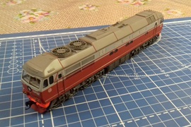 Разновидности: два прототипа - две модели Эпоха: V Принадлежность: РЖД Фирма-производитель: Загорулько_С. Год окончания производства: 2018 Описание моделиХодовые модели тепловозов ТЭП80-0001 и ТЭП80-0002 - авторская работа опытного петербургского моделиста Станислава Загорулько (техническая часть). Впервые модель тепловоза ТЭП80-0001 была представлена на выставке "Железнодорожная модель - 2018" в Центральном музее железнодорожного транспорта России (Санкт-Петербург). Описание прототипаТепловоз ТЭП80 (Тепловоз с Электропередачей, Пассажирский, заводской тип 80) – опытный восьмиосный тепловоз, построен в количестве двух экземпляров на Коломенском тепловозостроительном заводе в 1988-1989 гг. ТЭП80 – дальнейшее развитие конструкции серийного шестиосного пассажирского тепловоза ТЭП70. На тепловозе установлен 20-цилиндровый дизель мощностью 6000 л. с. (в полтора раза более мощный, чем дизель тепловоза ТЭП70). На тот момент это был самый мощный тепловозный дизель в нашей стране. Тепловоз ТЭП80 создавался для скоростного вождения длинносоставных пассажирских поездов. Но из-за распада СССР объёмы пассажирских перевозок снизились, и такой тип локомотива оказался невостребованным. 5 октября 1993 года на тепловозе ТЭП80-0002 установлен мировой рекорд скорости среди пассажирских тепловозов. Рекорд был установлен на линии Петербург – Москва и составил 271 км/ч. Этот рекорд не перекрыт и поныне. Запись о рекорде имеется на кузове тепловоза, который экспонируется в Музее железных дорог России в Санкт-Петербурге. Тепловоз ТЭП80-0001 тоже стал музейным экспонатом и находится в Новосибирском музее железнодорожной техники.