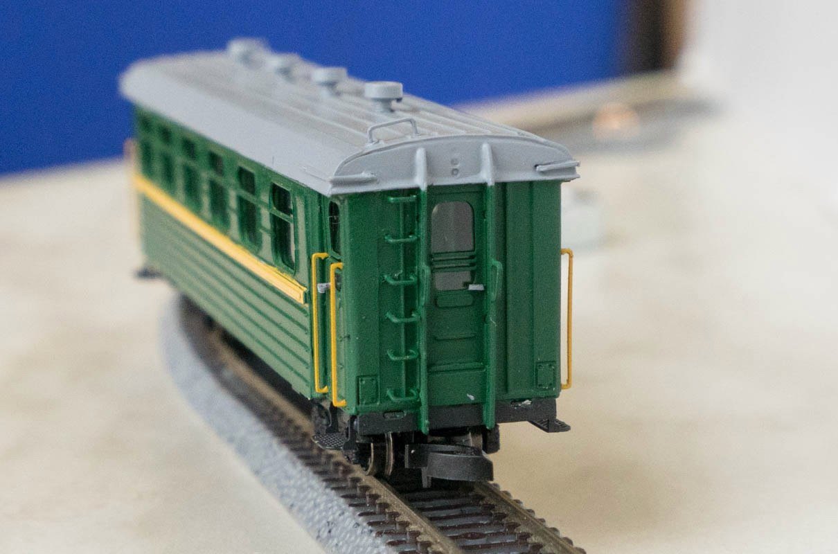 Разновидности: эпоха, цвет, деталировка - по желанию заказчика Эпоха: III-V Принадлежность: СЖД, РЖД Фирма-производитель: Норкин-модель Год начала производства: 2017 Год окончания производства: малая серия Описание моделиМодель узкоколейного вагона ПВ-40 была впервые представлена в корпоративной экспозиции Мануфактуры "Норкин-Модель" на традиционной выставке в ЦМЖТ (Санкт-Петербург) в 2017 г. Типоразмер модели - ТТе (масштаб 1:120, ширина колеи 6 мм). Модель выполнена из травлёной латуни, отличается высокой деталировкой и возможностью изготовления в различных вариациях. Первая партия полностью готовых моделей поступила в реализацию в феврале 2018 г. Заказ модели: - в Москве - в Санкт-Петербурге Описание прототипа4-осный цельнометаллический вагон ПВ-40 для узкоколейных дорог колеи 750 мм выпускался Демиховским машиностроительным заводом с 1955 г. и вплотьб до конца советского периода. Вагоны оборудованы ручным и автоматическим тормозами, санузлом и водяным отоплением, пассажировместимость — 40 мест для сидения. Распространён на детских железных дорогах и других железных дорогах колеи 750 мм стран бывшего СССР.