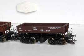 Эпоха: III Принадлежность: промышленный Фирма-производитель: Московский ТТ-Клуб Год начала производства: 2015 (малая серия) Описание моделиМодель 4-осного старотипного думпкара СЖД довоенной постройки - малосерийный проект моделистов Московского ТТ-Клуба. Использованы детали от серийной модели 50-тонного думпкара производства фирмы "Пересвет" (кузов, рама), укороченные путём выпиливания фрагмента из середины. Другие детали той же модели (тормозной цилиндр с узлом кремления, тележки "Даймонд", сцепки) используются без изменений. Единственная оригинальная деталь - торцевые поручни из травлёной латуни. Надписи выполнены с помощью тампопечати. Тираж малой серии - 7 экзепляров. Описание прототипа4-осный вагон-самосвал (думпкар) грузоподъёмностью 40 т выпускался на заводе "Красное Сормово" с 1936 г. Тара 24,2 т. Угол опрокидывания - 45 град. в любую сторону. Время опрокидывания с обратной постановкой - 1 мин.