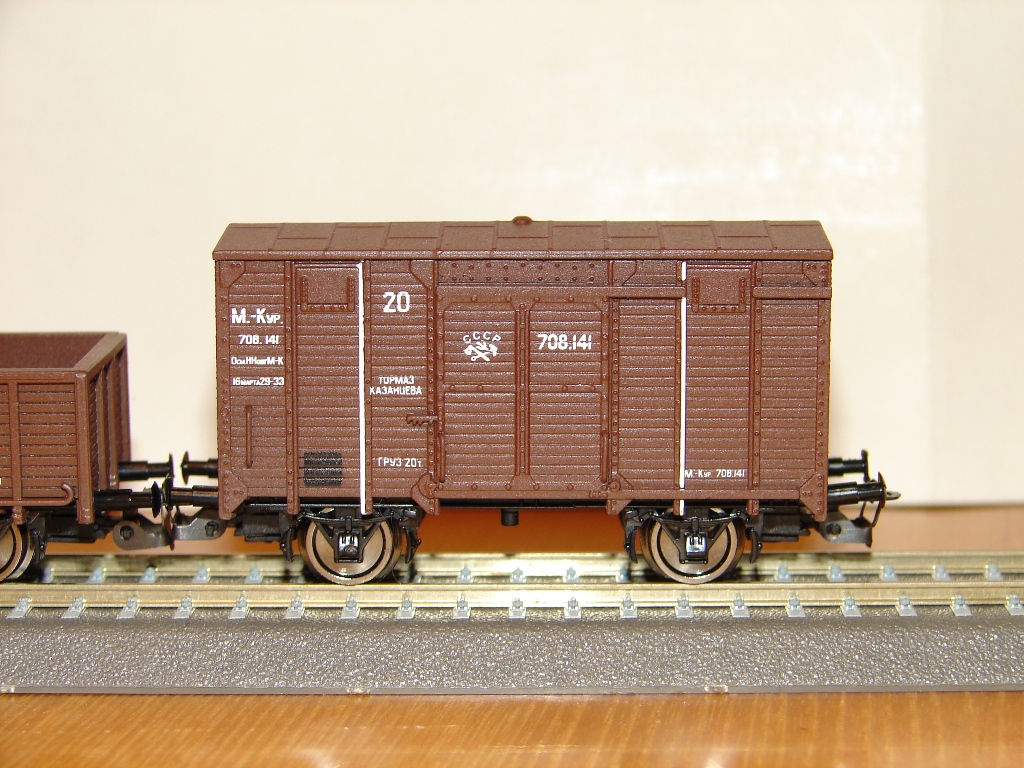 Крытый вагон канадского типа в окраске тридцатых годов.
