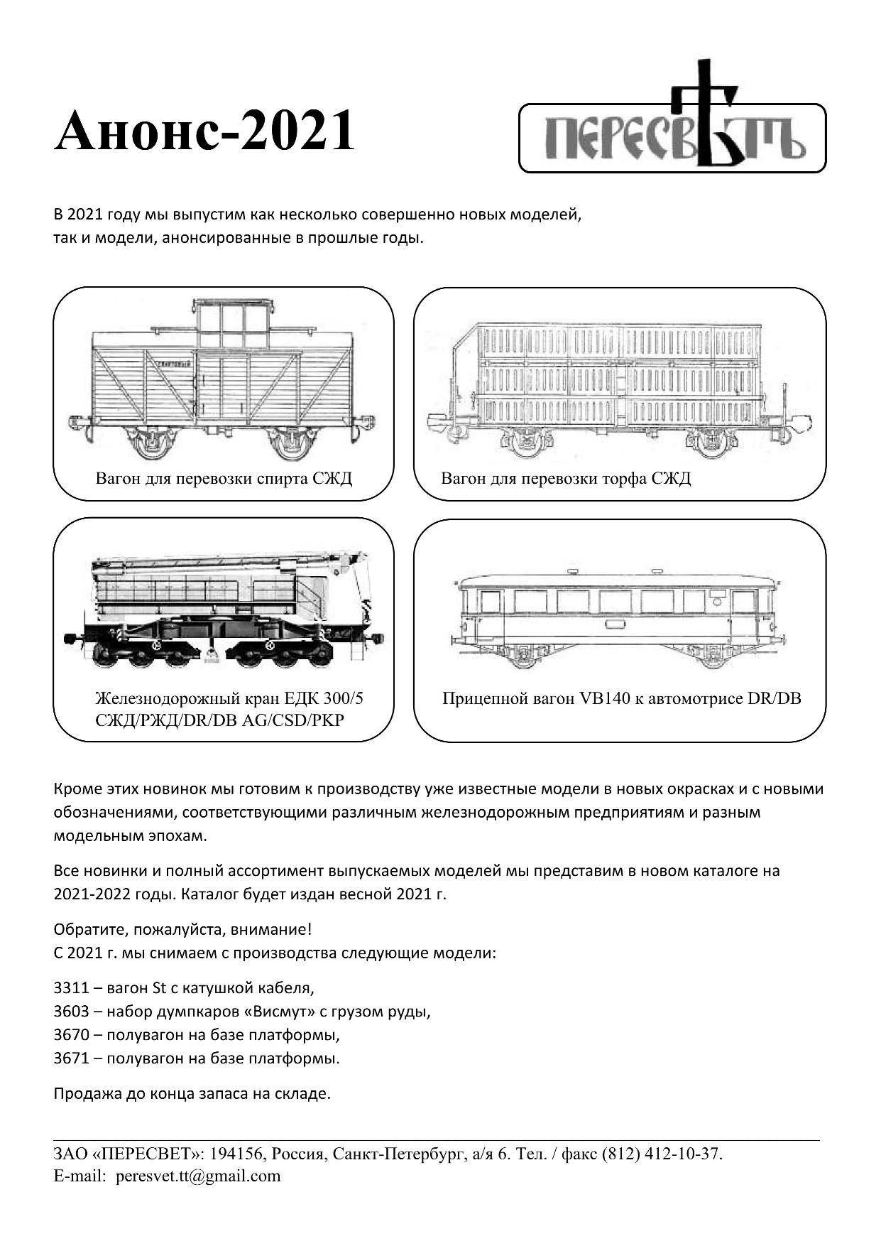 08-03-2021 Ежегодная выставка «Железнодорожная модель» традиционно состоится в 2021 году на весенних школьных каникулах. Постепенное снятие антикоронавирусных ограничений в Санкт-Петербурге позволяет говорить об этом вполне уверенно. В этом году выставка пройдёт не в привычных всем постоянным посетителям залах главного здания Центрального музея железнодорожного транспорта, а сразу на двух площадках. Основная экспозиция переедет в филиал ЦМЖТ – Музей мостов, расположенный по адресу : Мучной переулок, д.2, литера Г ( 10 минут пешком от М «Сенная площадь» ). Здесь, в новом выставочном зале ЦМЖТ, будут размещены стенды Петербургских фирм «ТТ-Модель» и «Пересвет», большой модульный макет «Пересвета» в новой конфигурации, витрины с моделями из частных коллекций, игровой макет в типоразмере НО и модели в музейных масштабах, изготовленные на Детских железных дорогах и в Кружках юных железнодорожников. Здесь же будут происходить все запланированные встречи, семинары и просто общение любителей. В помещении Малой Октябрьской железной дороги по адресу : Библиотечный переулок, д.4 ( 5 минут пешком от М «Балтийская») состоится сборка силами любителей модульного макета «Модуль-мастер» в типоразмере ТТ. Торжественное открытие выставки произойдёт в Музее мостов в субботу, 20.03.2021 в 13.00, закрытие там же в воскресенье, 28.03.2021 в 15.00. Обратите внимание! Во время работы выставки будет организовано челночное движение автобуса между площадками. Расписание автобуса будет уточнено позже. Для посещения помещений МОЖД в Библиотечном переулке необходимо заранее записаться у Алексея Райкеруса, тел. 8(911)115-62-35 или generalspb@yandex.ru До встречи на выставке «Железнодорожная модель – 2021» !
